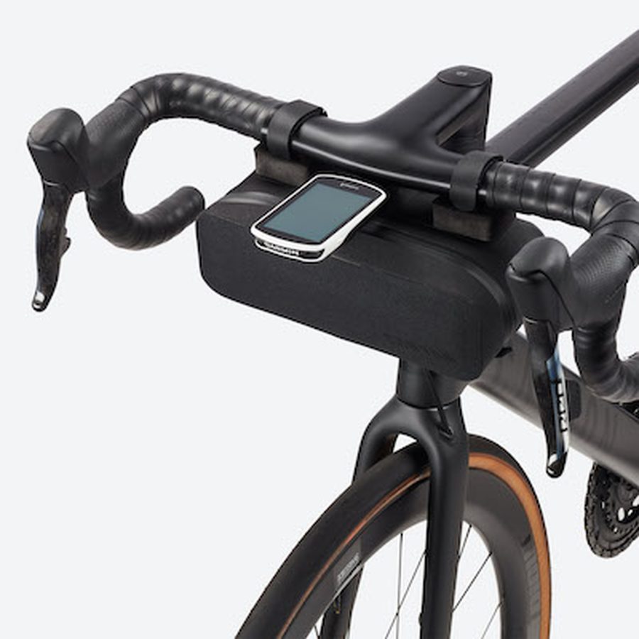 日々のライドからツーリングに最適な、容量2ℓの軽量な防水素材製バッグ。GarminとWahooのコンピュータ用マウント取り付け穴を上部に、ガジェット充電用のケーブル穴を背面に配置。様々なハンドルバーにフィットするよう、マルチユースストラップとフォームスペーサーが付属しています。