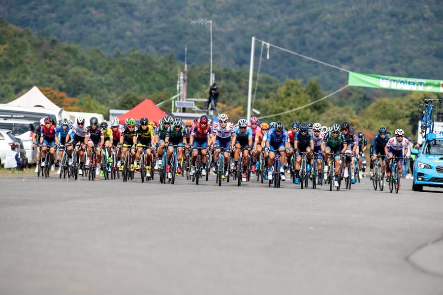 スタート前には前回大会の王者である入部正太朗(弱虫ペダル サイクリングチーム)と、東京オリンピックのロードレースでの完走を果たし、また前々日の個人タイムトライアルを制した増田成幸(宇都宮ブリッツェン)がシード選手として最前列に並ぶ。