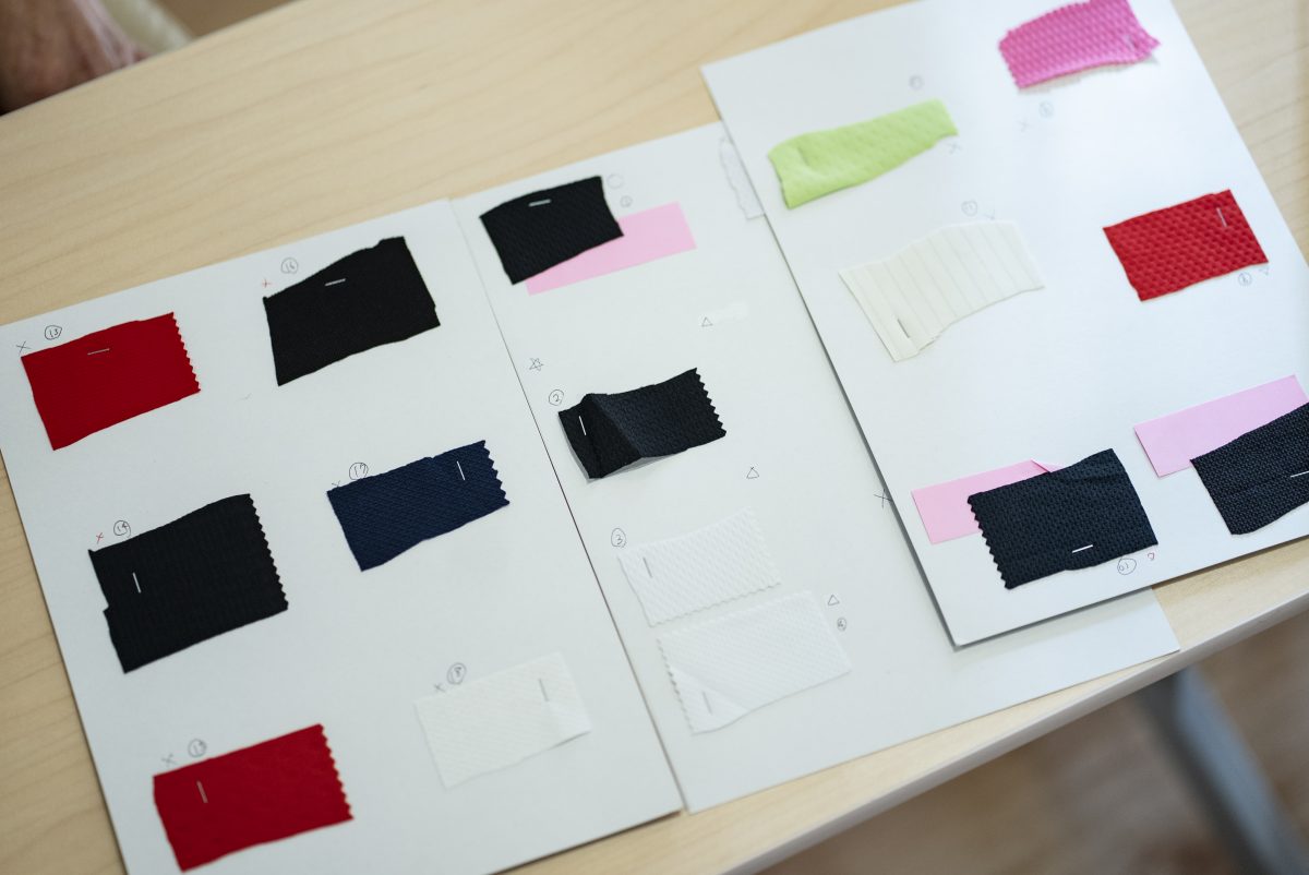 「個々異なる身体にフィットさせるには、ボタンひとつで計算できるわけではありません。動きのなかで筋肉は盛り上がるため、素材の伸縮率を調整しながら一つひとつ手作業で決めていく必要があります」(佐藤)