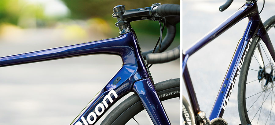 フレーム素材には、高弾性カーボンの東レ製800カーボンをメインに、部分的にT700カーボンもブレンドし過度な剛性を抑える。フレーム重量は1065g、フォーク重量は435g(ともに480mmサイズ)に仕上がる。