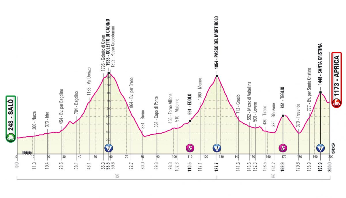 運命の第3週。その初日となる第16ステージは、ゴレット・ディ・カディーノ、パッソ・デル・モルティローロ、サンタ・クリスティーナと3つの1級山岳越えが待ち受ける。獲得標高は5,440mであるうえに、サンタ・クリスティーナからフィニッシュ地・アプリーカまでの約6kmのダウンヒルもポイントになる可能性がある。