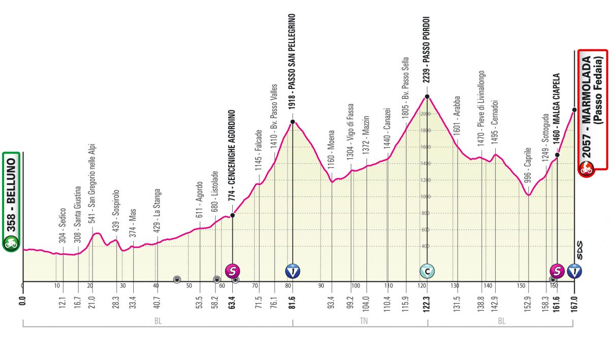 528日 第20ステージ ベッルーノ~マルモラーダ(パッソ・フェダイア) 167km 山岳 ★★★★★
