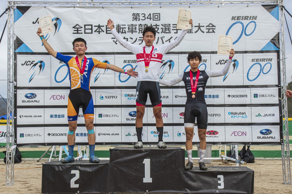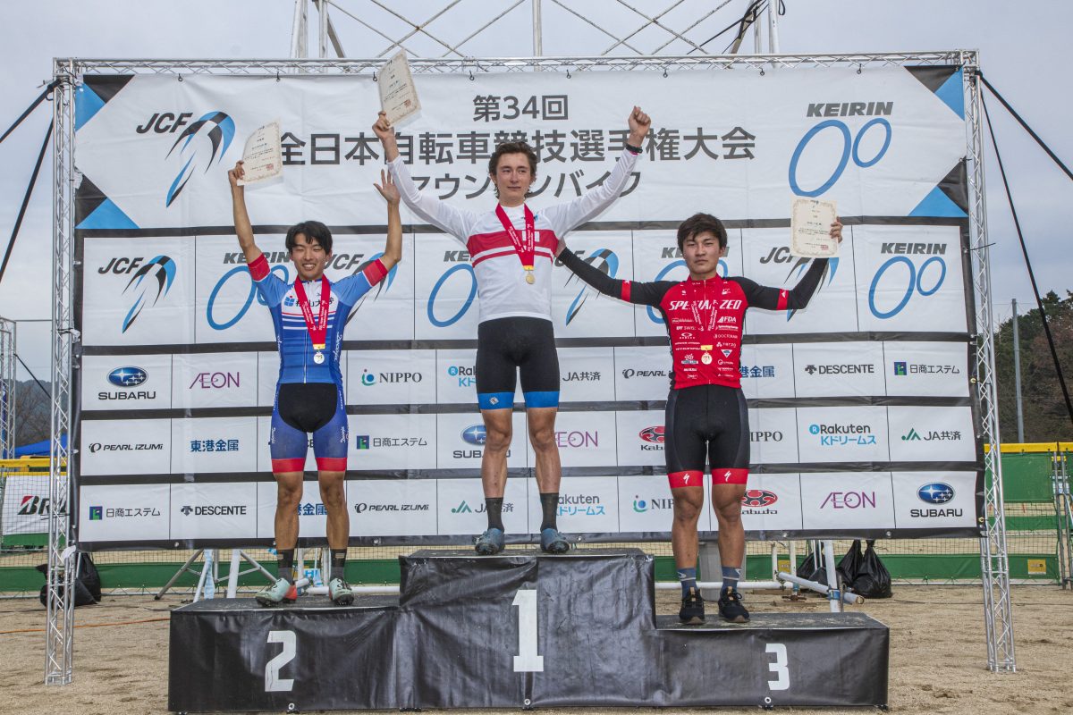 3.91kmのコースを6周で争われた男子エリートは、沢田、竹内 遼(FUKAYA RACING)が先行。4周目に入って宮津 旭(PAXPROJECT)が先頭2人に合流したが、直後の急坂区間で沢田がペースアップ。そのまま竹内と宮津との差を広げて、レース後半は独走。最終的に2位の宮津に20秒近い差をつけて逃げ切った。