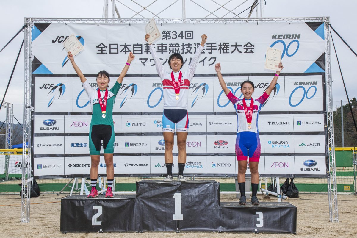 また、全体4番手でフィニッシュした橋口がエリートではトップで、このカテゴリーの新女王に。昨年の3位からジャンプアップして日本チャンピオンジャージに袖を通した。