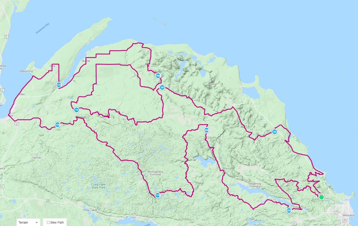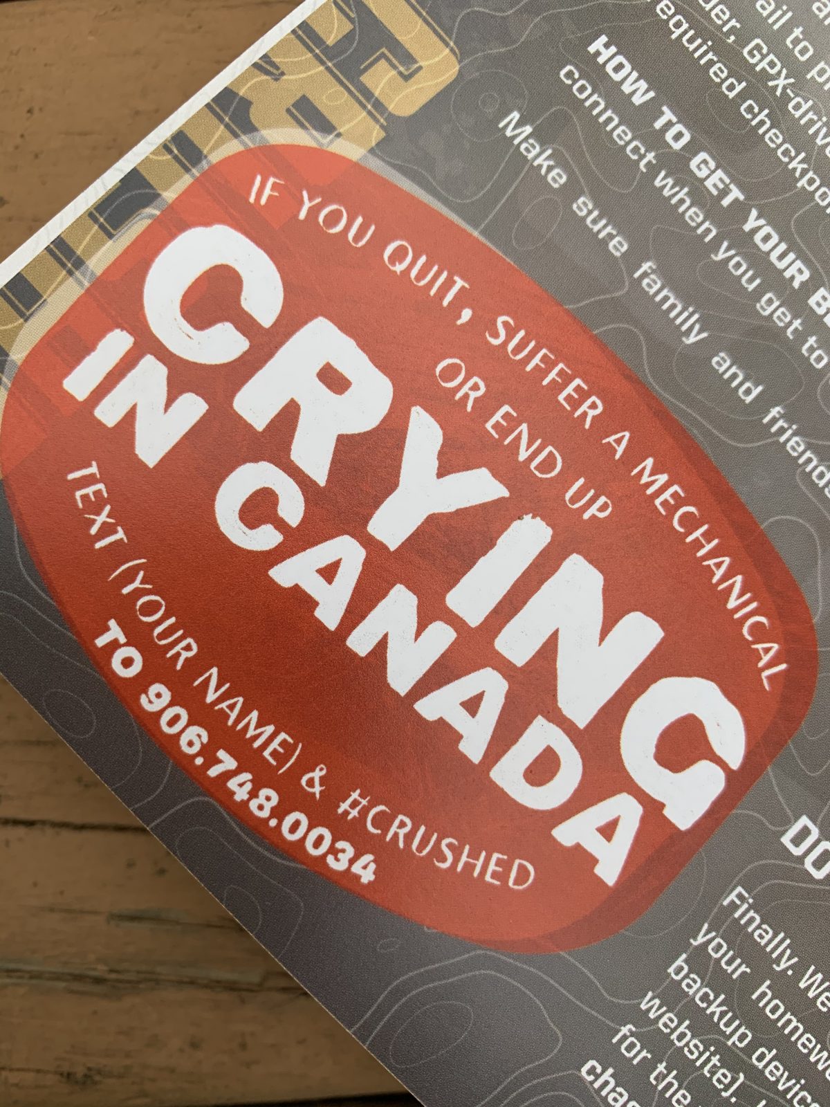 『 君たちが参加登録をしたのは、ただのグラベルレースではない。これはエンハンスト(強化された)グラベルレースだ。君たちを待ち受けているのは、自転車を背負って登る岩壁、幾つもの川の横断、岩だらけの下り、4輪バギー専用の荒いトレイル、腰まで深さのある池、砂に泥の道、ありとあらゆる虫、熊、狼、山猫にヘラジカだ。人里から離れた荒野を走り抜けるのは容易ではない。昼と夜の気温差は20℃以上ある。冗談でも過剰表現でもなく全てが事実だ。ミシガン州の最高地点まで上り、スペリオル湖に合流する川を渡り、悪名高い「蚊の渓谷」を通り抜ける。
