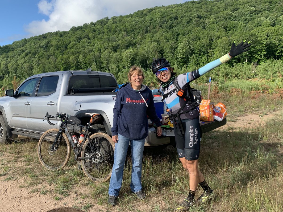 出口には、他のライダーのサポートをしていた地元のリサが笑顔で手を振っていました。衛星追跡サイトで、私たちが蚊の渓谷にいることを知っていたようです。クッキーや水を出してくれたので、喜んでもらいました。次にいったん小休憩と決めていた場所までは50km弱。よし、張り切っていきましょう!