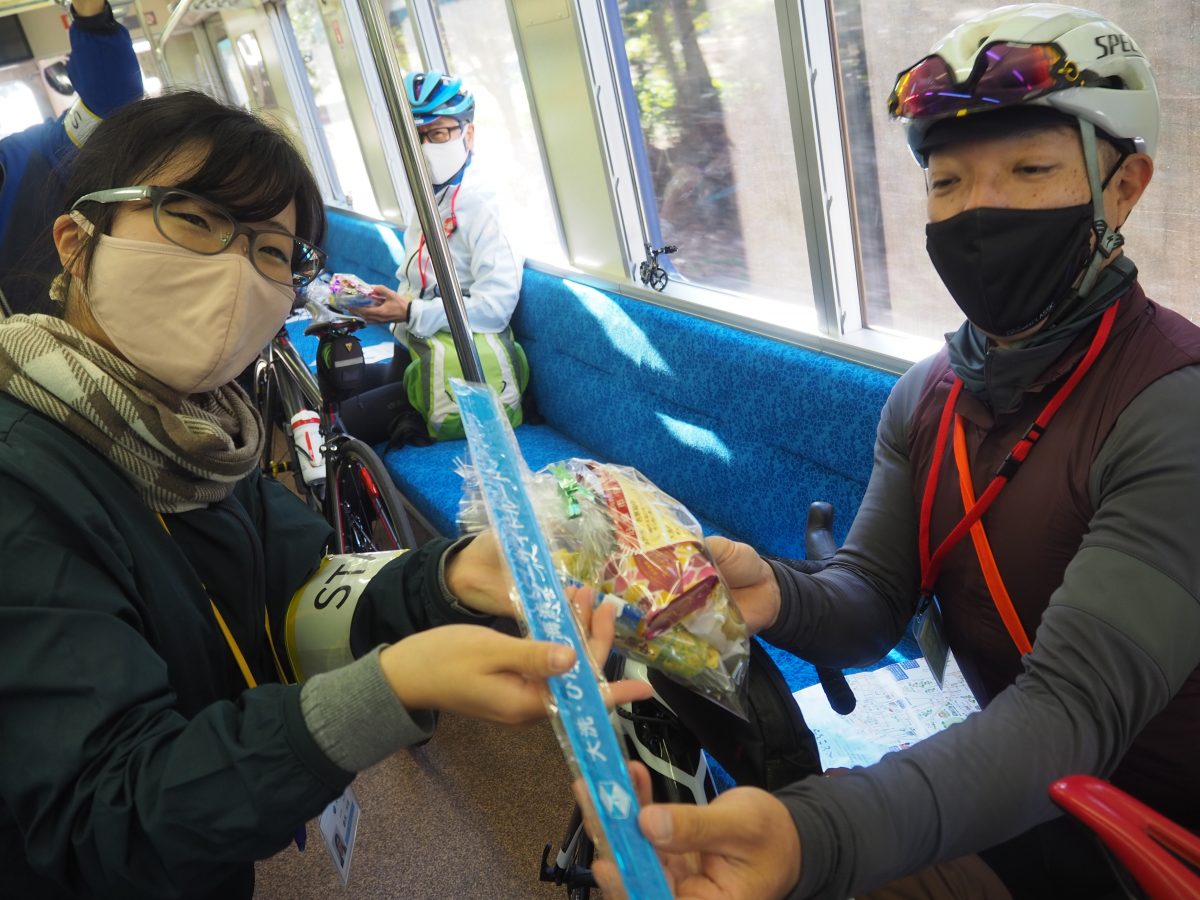実証実験なのに、なんとお土産(地元のお菓子詰め合わせ)などがもらえた!