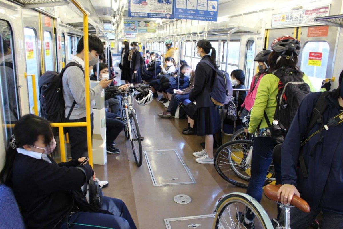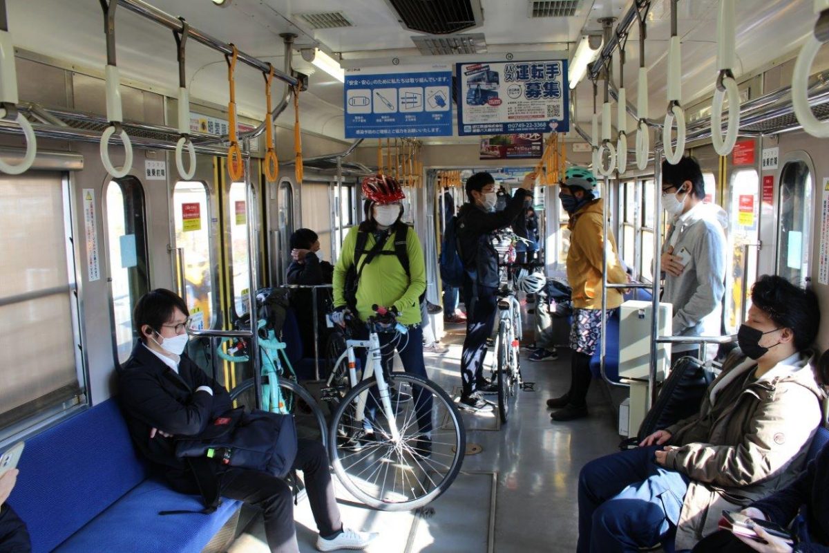 楽しみにしていたのが近江鉄道のサイクルトレイン。近江鉄道の八日市線をのぞく全線で実施されていて、自転車を分解せずにそのまま列車に載せられる。彦根駅での乗降ができないのは残念だが、あとは全駅で乗り降りできる。しかも自転車積載料金は無料! 予約も不要! 土日祭日は終日利用可能で、平日もおおむね朝9時から夕方16時まで利用可能。ま、朝夕のラッシュ時を避けるってことですね。