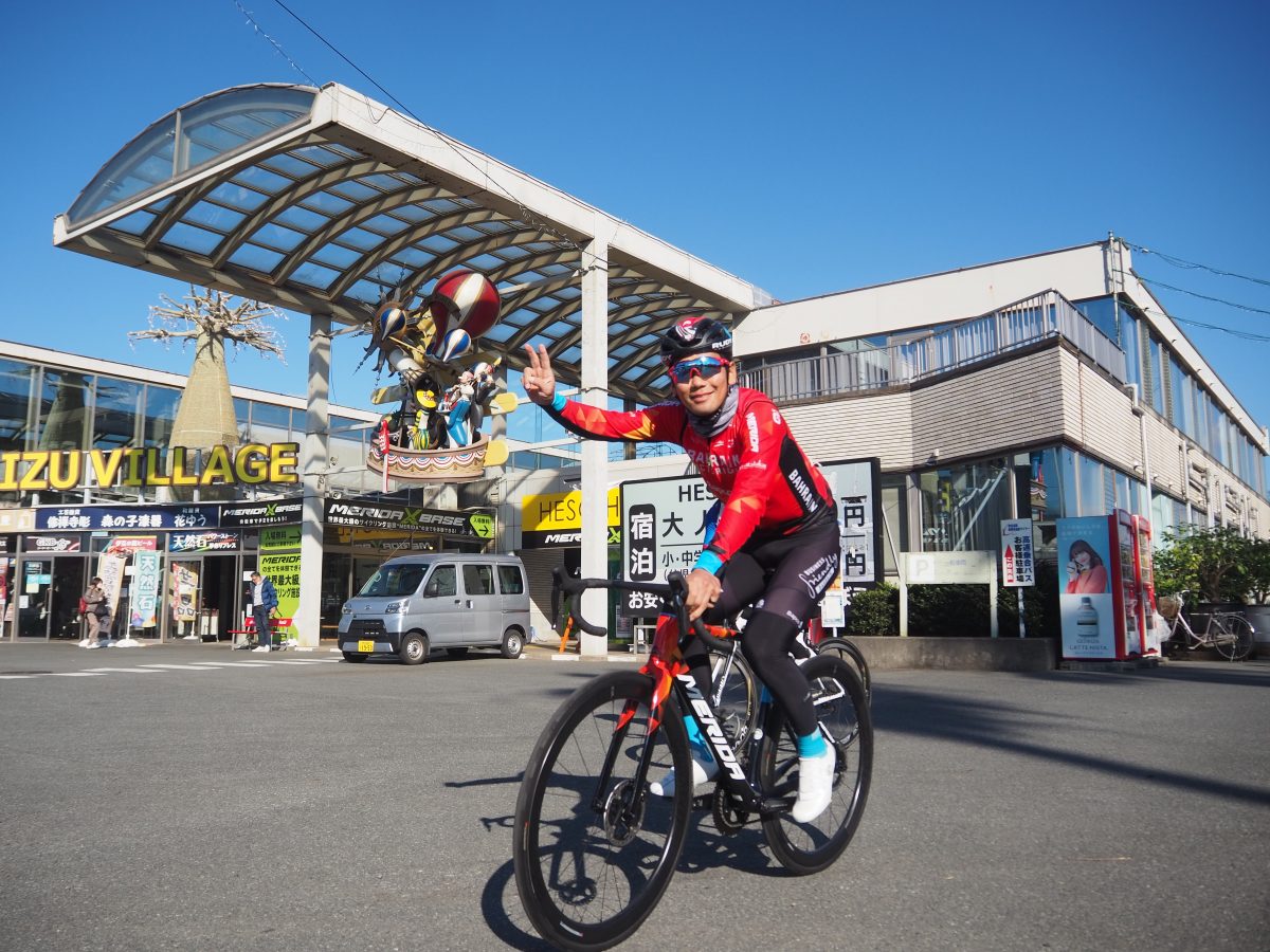 新城選手がメリダエックスベースがある伊豆ビレッジを出発
