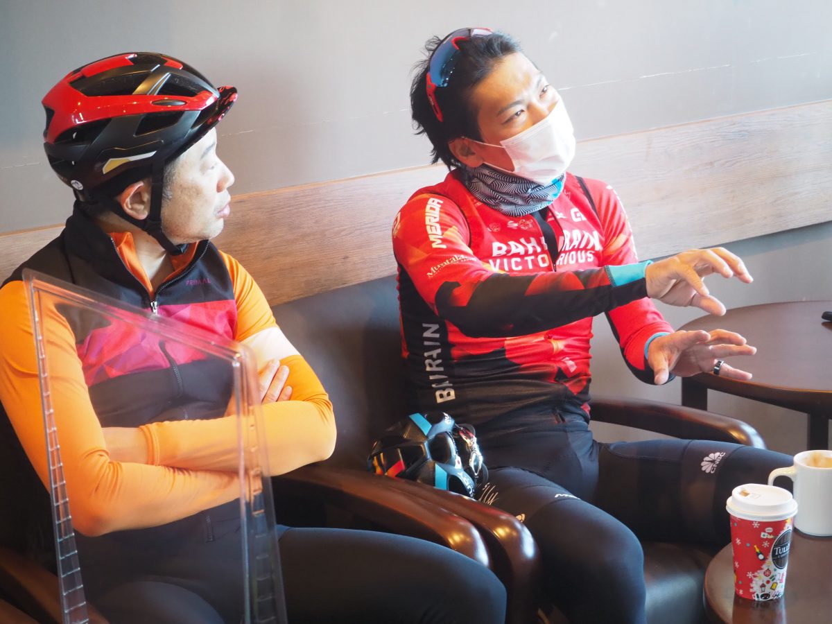途中の「道の駅伊豆ゲートウェイ函南」のカフェでは両選手を囲んで一服。最初は緊張していた参加者たちだったが、ライドをともにしたことで緊張がほぐれ、選手2人と間近で会話し、記念撮影をしたり、サインをもらう人も!