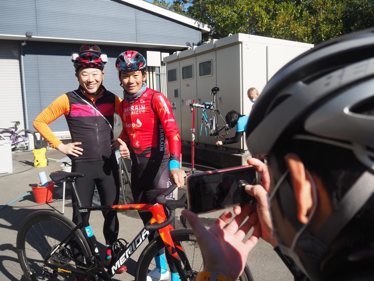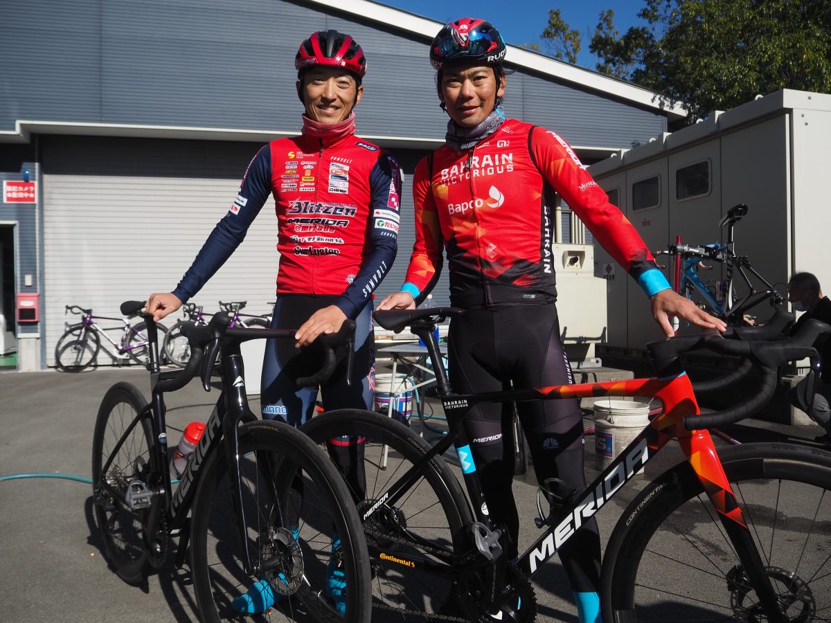 左が増田選手(宇都宮ブリッツェン)、右が新城選手(バーレーン・ヴィクトリアス)。新型のメリダ・スクルトゥーラを駆った二人。増田選手は「この日初めて新型に乗りました」という。