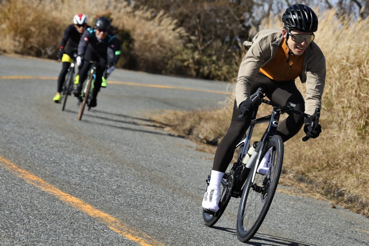本番のNYGFをイメージしてコースは2つが用意された。メディオフォンド(熱海駅→山伏峠→修善寺→宇佐美峠→伊東→熱海駅の約75㎞)、グランフォンド(熱海駅→宇佐美峠→修善寺→西伊豆スカイライン→修善寺→山伏峠→熱海駅の約110㎞)が用意され、脚力に合わせてそれぞれのコースを楽しんだ。それぞれハードな上りもあり、チーム内で助け合いながらのライドとなった。