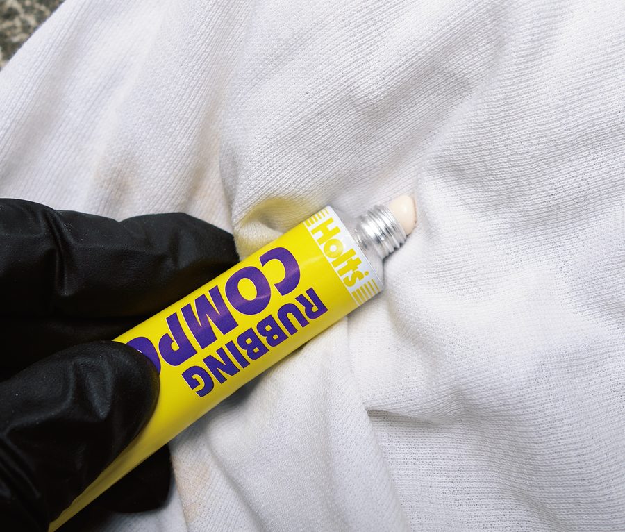 塗装面や樹脂製のパーツは、コンパウンドで汚れ落とし&磨き。