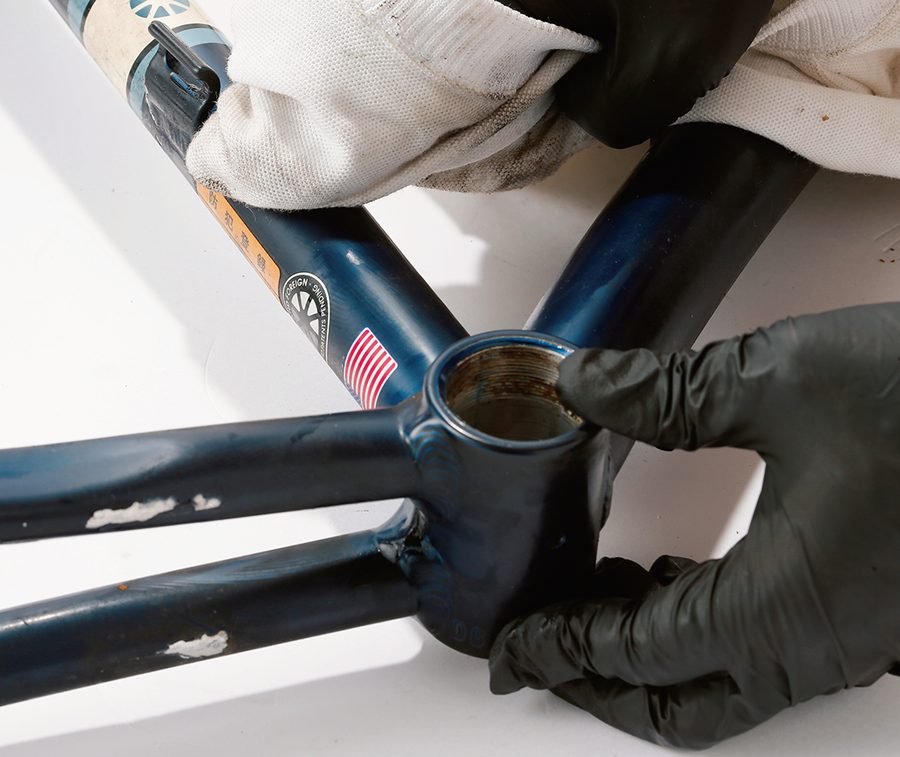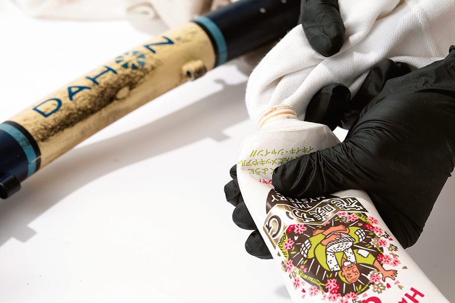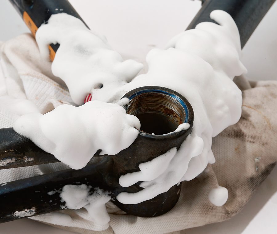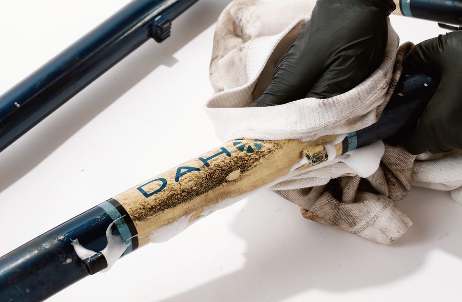 各種クリーナーを使ってフレームをクリーニング。油汚れは油で落とすこともできる。