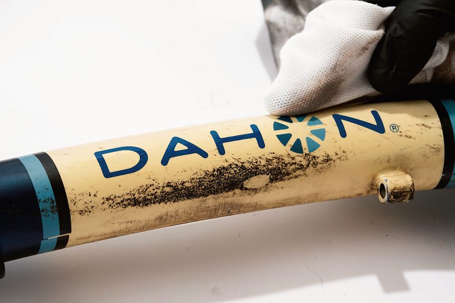 フレームの汚れの状況に応じて順番に落としていく。まずはホコリ落とし、次に泥落とし、最後に油落としを行っていく。場所に余裕があれば、まるごと水洗いしてもいいが、狭い場合はクリーナーで部位別にキレイにしていく。