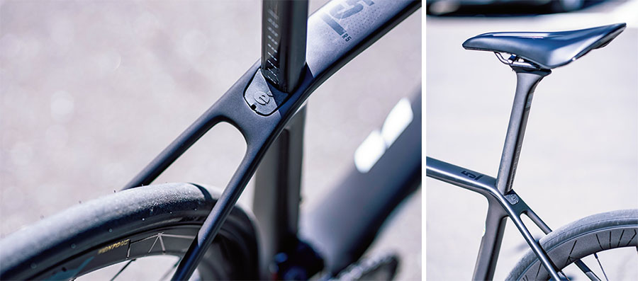 いっぽう、エアロケーブルマネージメントを採用しケーブルの空気抵抗を減らした結果、空力性能も25gの抵抗値を削減。さらに独自のスクオーバルマックス形状のダウンチューブの位置を下げてフロントタイヤとの距離を縮め、かつタイヤクリアランスを拡張エアロフローを改善。ピュアクライマーとして進化しつつ、結果的に空力性能も前作から向上させることに成功し、総合力で大きな進化をとげている。