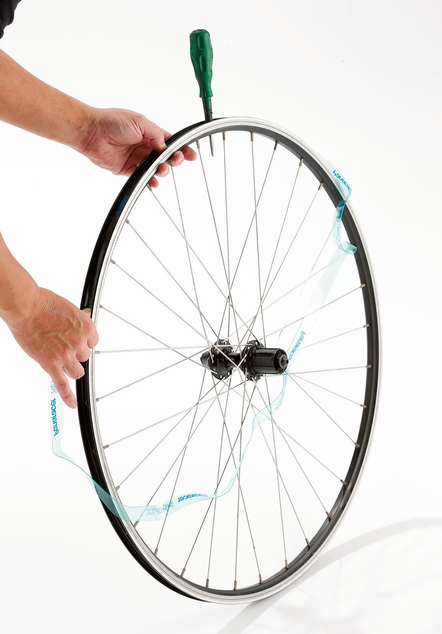 装着するタイヤサイズやリムの内幅に応じてリムフラップを選ぶ。貼って付けるタイプのリムテープも同じ用途となる