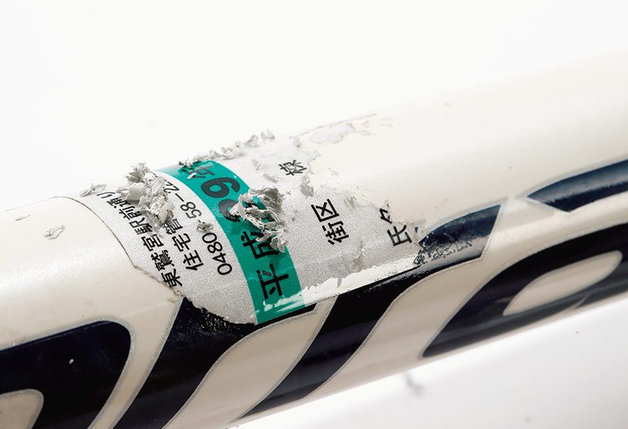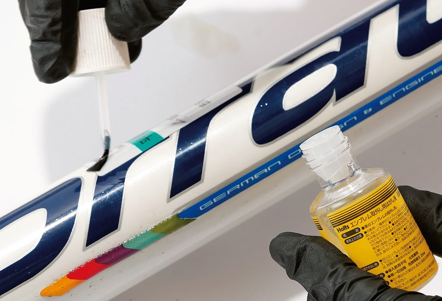 このときに不要な駐輪ステッカーなどもはがす。これもノリが固着し、なかなか手ごわい。