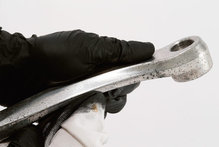 車体から外したパーツは、拭き掃除にとどめるもの、分解してこまめにクリーニングするもの、さらにドバッと一気に洗浄&サビとりするものに分ける。STIなどシフトレバーは精密機器なので、拭き掃除にとどめる。