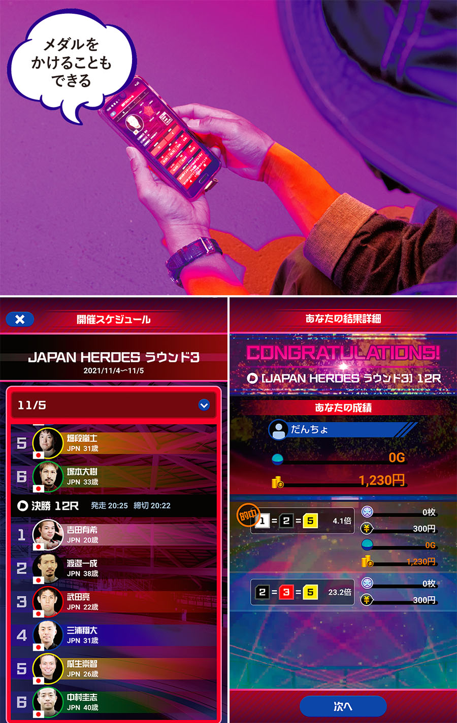 下/選手情報や払い戻し金、購入状況がすぐにわかる