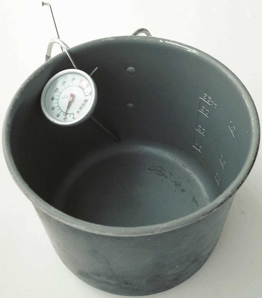 使った鍋は、今後もモルテンスピードワックス専用となる。使い古したクッカーなどを用意する。これにワックスを入れチェーンを煮る。
