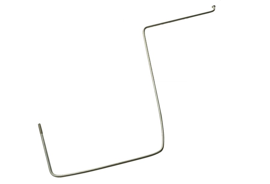 スポークを曲げて作るリンク外し。2mmのステンレススポークはそれなりに固いがペンチを使って曲げる。慣れるとブレーキスプリングなどもスポークで作れるぞ