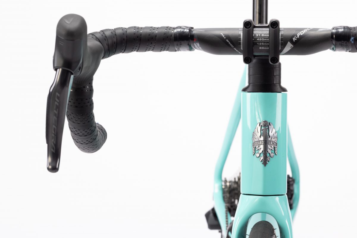 マテリアル・サイエンス社と共同開発した振動吸収素材・カウンターヴェイルをフレームやフォークのカーボンの積層内に入れ込むビアンキCVシステムを採用。独自のカーボン繊維構造と粘弾性を持つ同素材により、フレームとフォークの剛性と強度を向上させつつ最大80%の振動を除去することを可能にし、レーシングフレームでありながら高い快適性を実現。