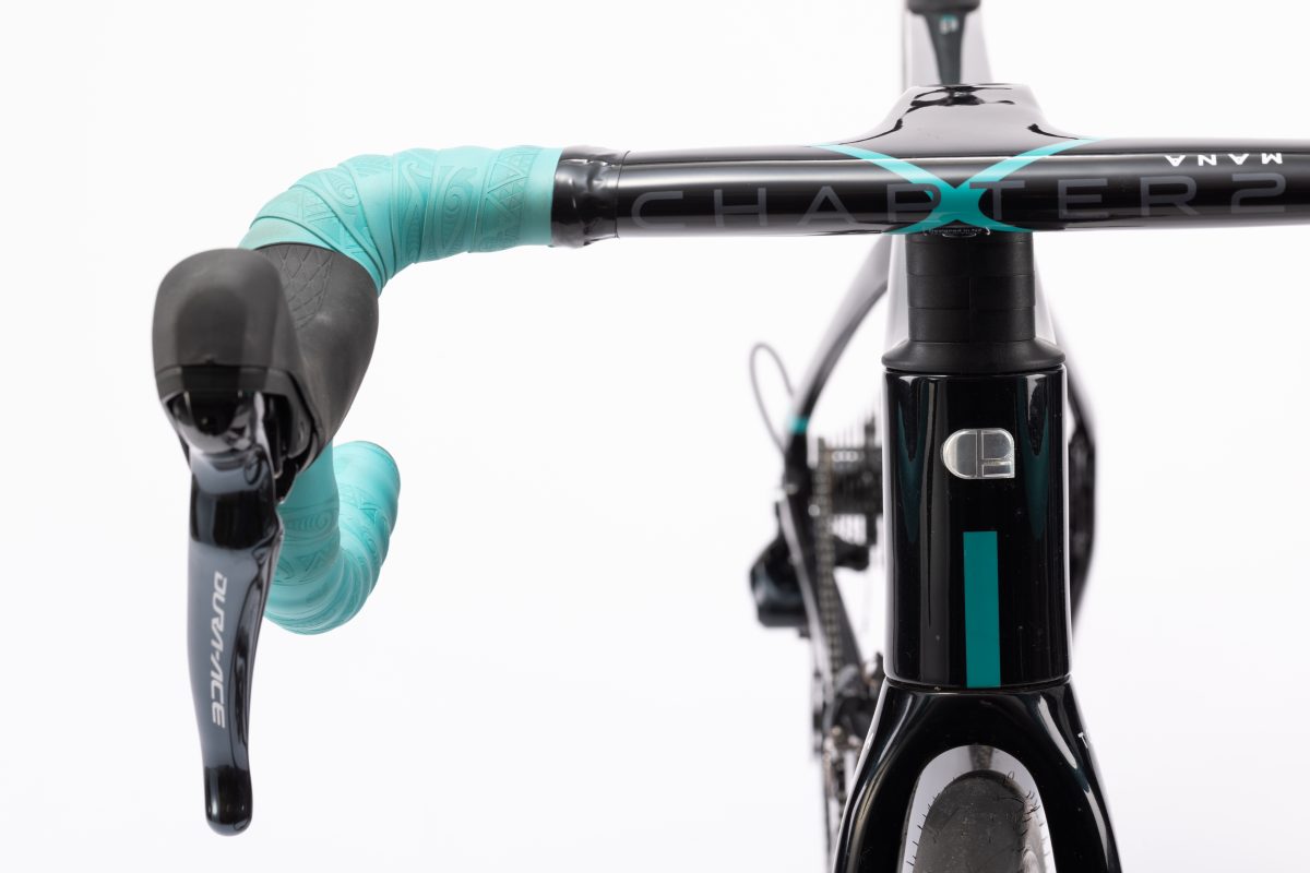チャプター2のブランド創始者兼デザイナーであるマイク・プライドによって生み出され、ニュージーランドのマオリ語で「勝利」を表すトア。その素材には硬いT1000カーボンではなく、あえてT800カーボンをメインに採用し、長距離かつやや荒れた路面でも走りやすく設計。ヘッドチューブとBB付近には強化リブ補強がなされ、レーシングバイクとしての剛性向上を実現している。