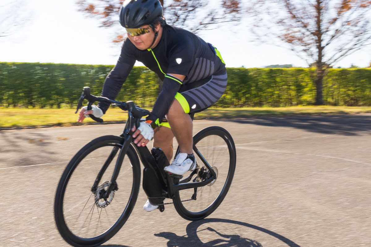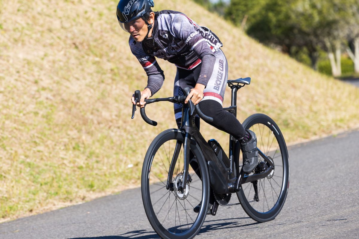 ダウンチューブの下に装備されたエアロストレージボックスの効果は、後輪のリムハイトを20㎜ほど上げたぐらいの効果が体感できるが、脚を止めたときの減速具合は高いリムハイトのホイールよりも速く感じた。通常装備状態の走りは、パキパキの高剛性エアロロードというよりも脚にこない優しさを併せ持った走りで、ハンドリングも比較的穏やか。ロードレースやアイアンマン、さらに北海道一周を短期間で行うような快速ツーリング用として最適。すべてを1台でこなせるバイクとしてはほかに存在しないカテゴリーを作ったと言える。