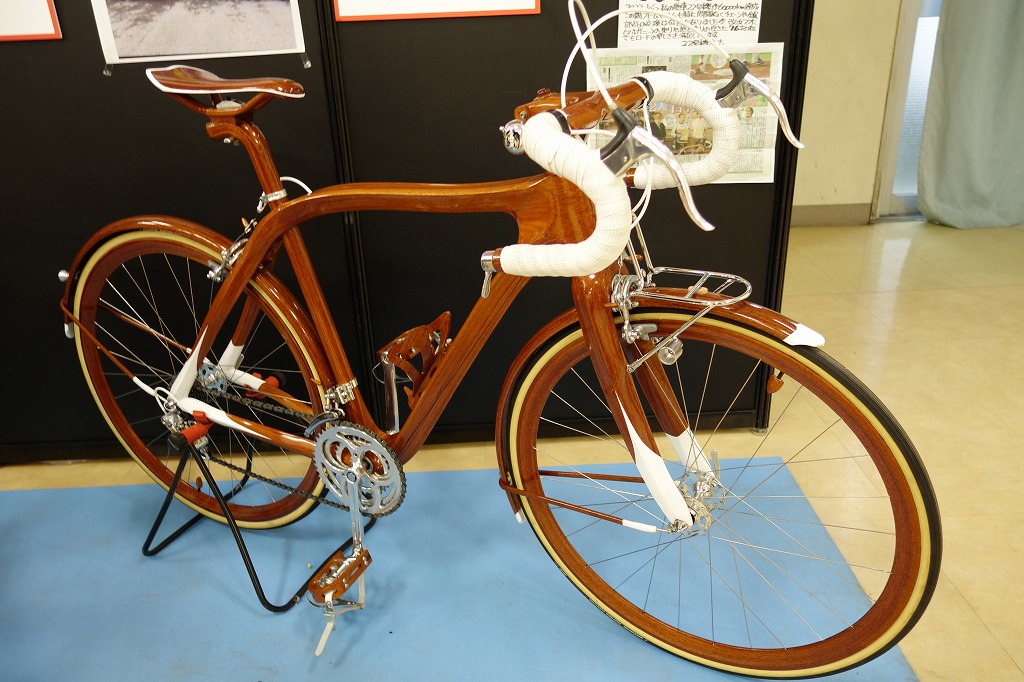 ついに登場したマッドガードも木製という木製ランドナー。スチールパイプの自転車とは別次元のハンドメイド感で圧倒的な存在感!