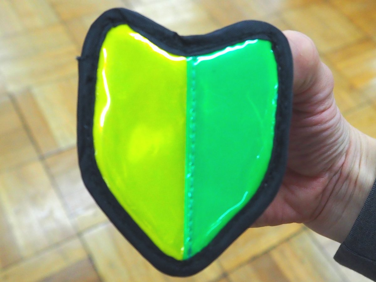 おにぎりリフレクターの最新版。リアライトを入れて使える。これで反射板とライトを兼ねて、被視認性がさらにアップ!