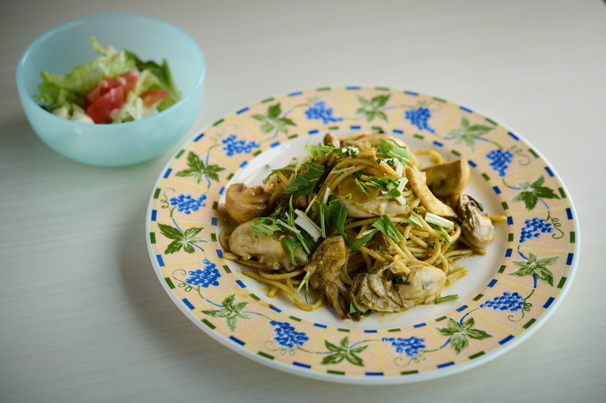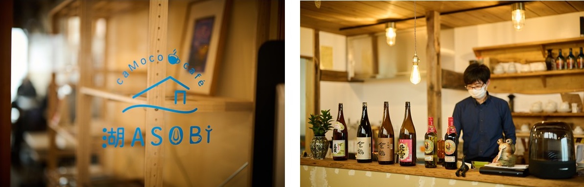 昼食は湖のほとりにある船小屋をカフェに改装した「湖ASOBi」へ。目の前の湖・加茂湖の水の上に立っているような景色が魅力的で、落ち着いてくつろぎながら昼食を楽しめる。加茂湖で採れた新鮮なカキや佐渡産の食材、コーヒーなどのメニューが堪能できる。カフェ営業だけでなく、ライブなども行っている。
