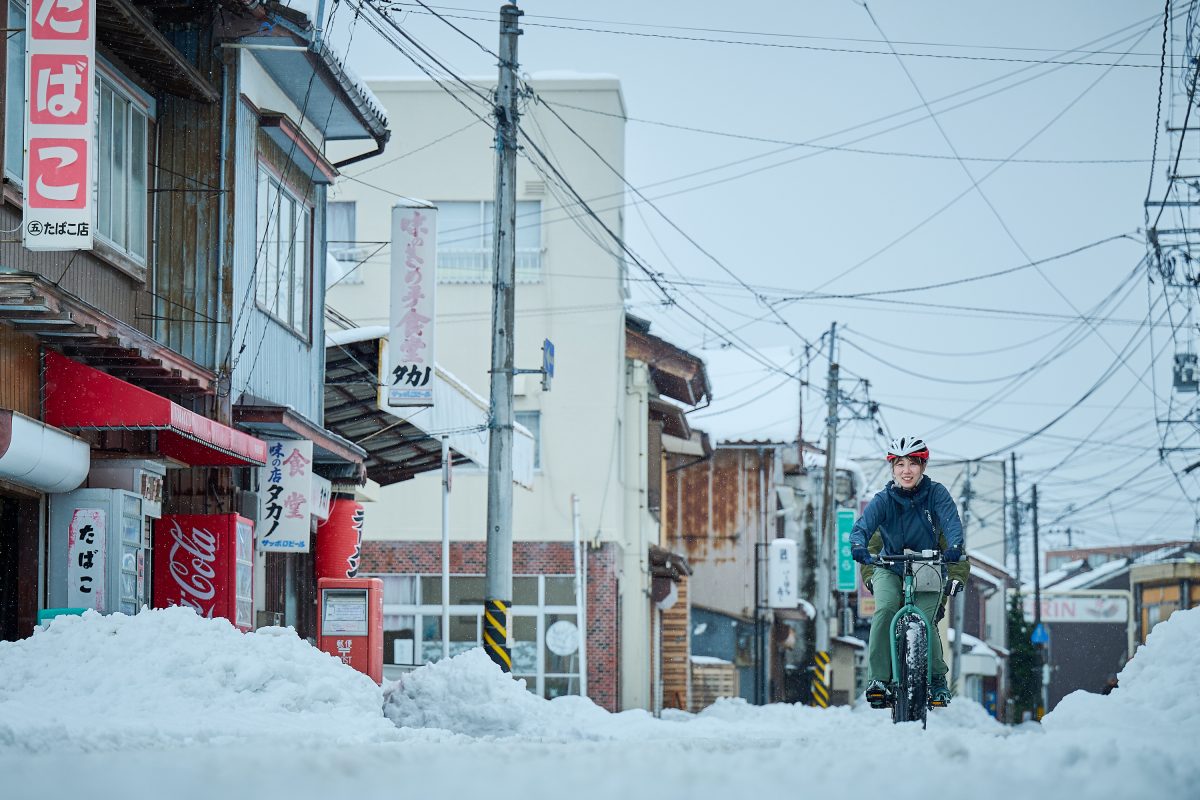 雪道でも走れる! 冬の佐渡でサイクリングを楽しむ旅へ