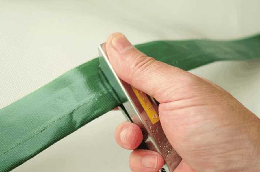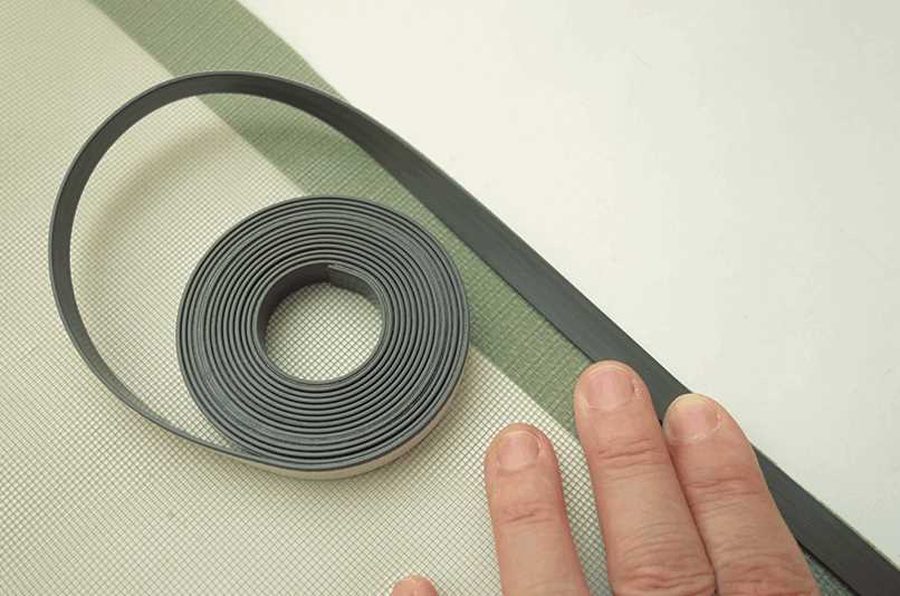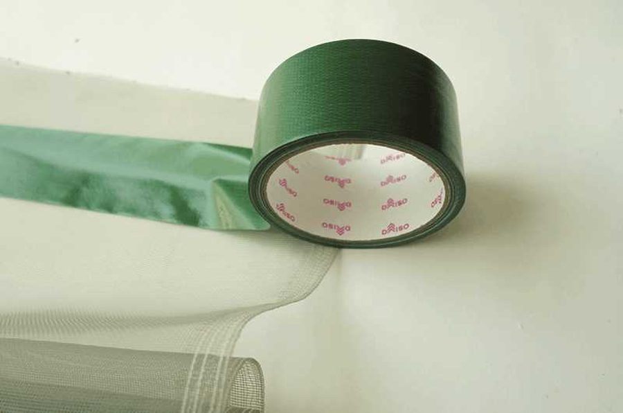 網戸用のネット。網は切るとほつれるのでテープを貼ってから切る