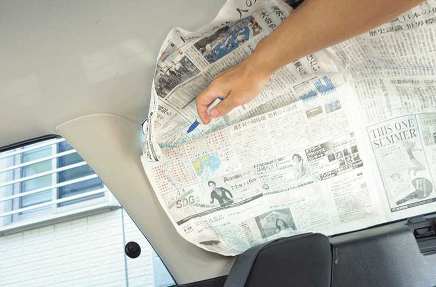新聞紙などを当てて、油性ペンなどで窓の大きさの型どりをする