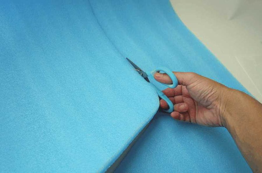 型に合わせ、ちょっと大きめにレジャーマットをハサミでカット