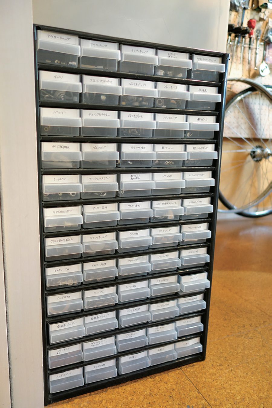 編集部ニシヤマが作り出した魔窟「自転車汚部屋」をDIYで大改造する人気のシリーズ。今回は、オーバーフローして床に散らばっていた自転車アイテムの保管を見直してみることに。ホイールなどの大物と違い、厄介なのがボルトやブレーキシューなどの細かいパーツだ。床に散らばったままでは必要なときに数が足りなくなるだけでなく、ケガの原因にもなる。使いやすくスッキリ収納する方法を探してみた。