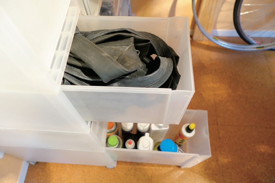 無印の人気商品がおすすめ! 大量の自転車パーツをスッキリ収納する自転車部屋DIY