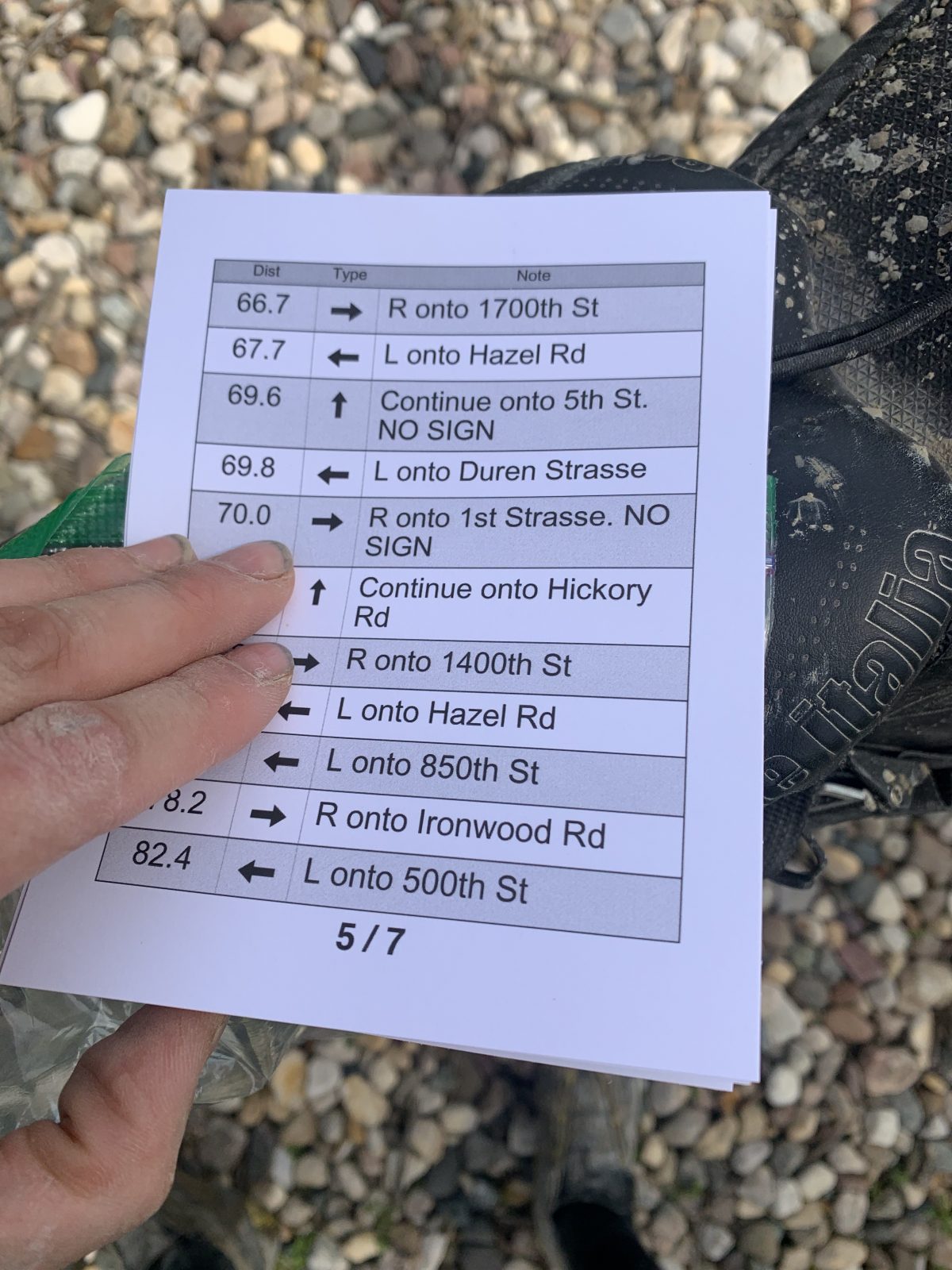 道路標識の一部はなくなっている。アメリカ中西部の春天気は変わりやすく予測不可能で、当日もきっと良くない。竜巻の時期ではないが強風の可能性は高い。冬の間に荒れたグラベルロードの整備のために、新しく砂利がまかれている(つまりゴロゴロ)。大会名のアイオワ・「ウィンド&ロック」がまさにピッタリな状況です。