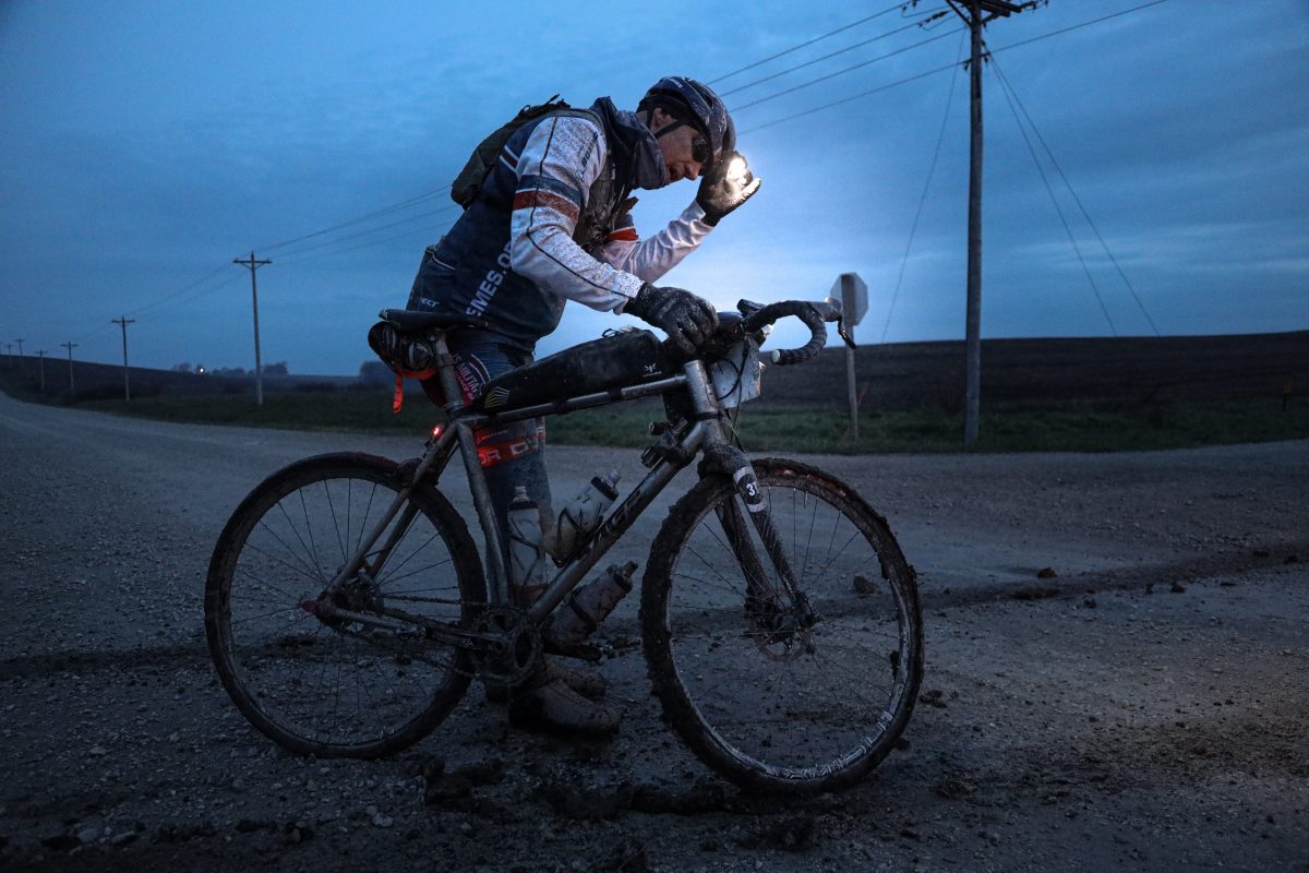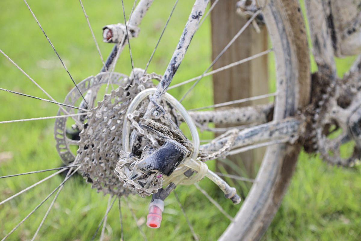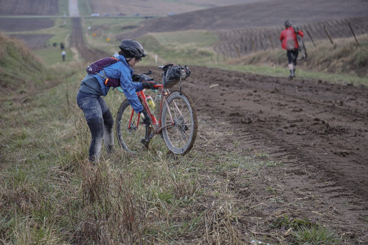 Bロードで立ち止まって泥を落とそうと試みる。PHOTO:Michael Conti