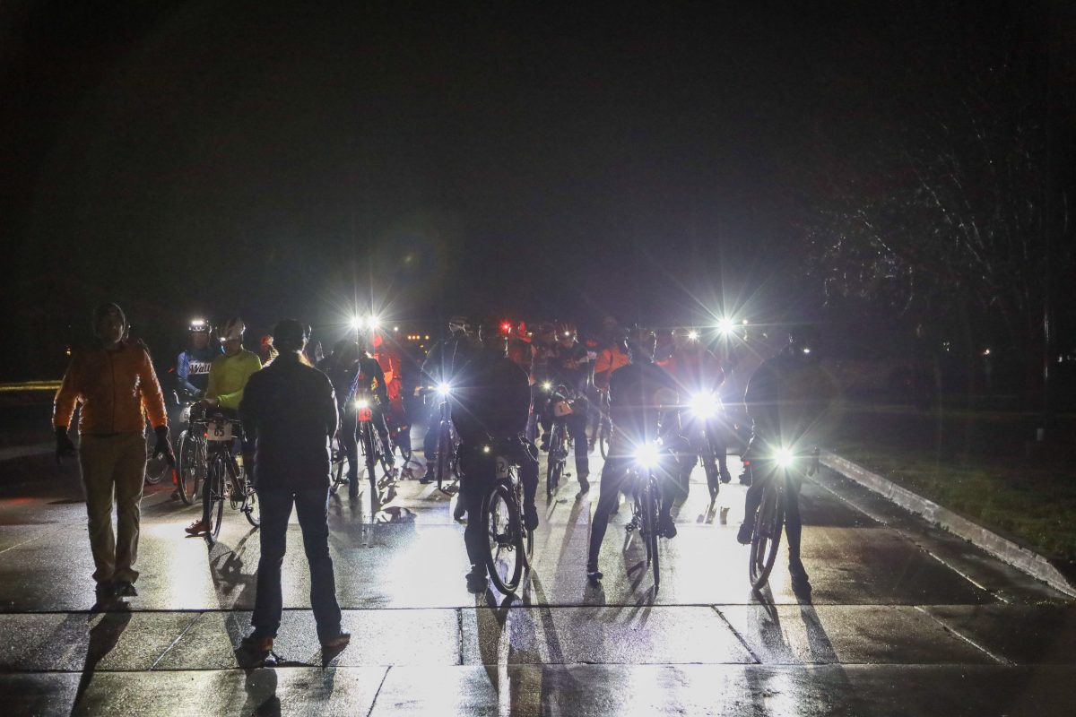 住宅エリアを出るともう街灯は一切ないので真っ暗です。ヘッドライトが何人分もあるので前方は見えるには見えるのですが、奥行きの感覚はつかみづらく、道と橋の間に隙間や段差があるのか、上りや下りの距離、カーブ角度も直前にならないとわかりません。念のため、通常集団走行で保っている距離よりも少し間を開けて走りました。