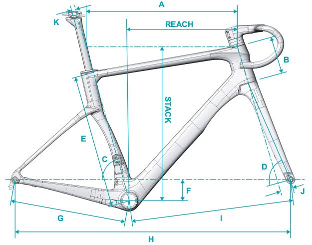 具体的にはボトムブラケット13.35%、ヘッドチューブ35.64%剛性を向上させている。またエアロ効果については、前述のダウンチューブのほかにもハンドルのMANA(マナ)バーを採用して完全内装ケーブルを実現することで前面からの空気の流れをスムーズに。しかもその流れは、前後ともホイールに沿ったフレームのカットアウト形状で、さらなるバイクまわりの空気の整流効果が発揮される。