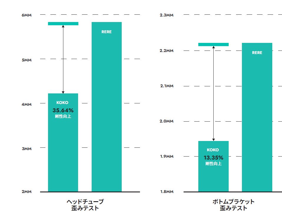 ココは2018年からラインナップされているRERE(レレ)の正統な進化型で、ダウンチューブにカムテール形状を採用しエアロ効果を高めたほか、あらゆる点で進化を果たしたチャプター2のエアロロードのトップモデル。半年前ほどに登場したピュアレーシングモデル、TOA(トア)と双璧をなすモデルだ。