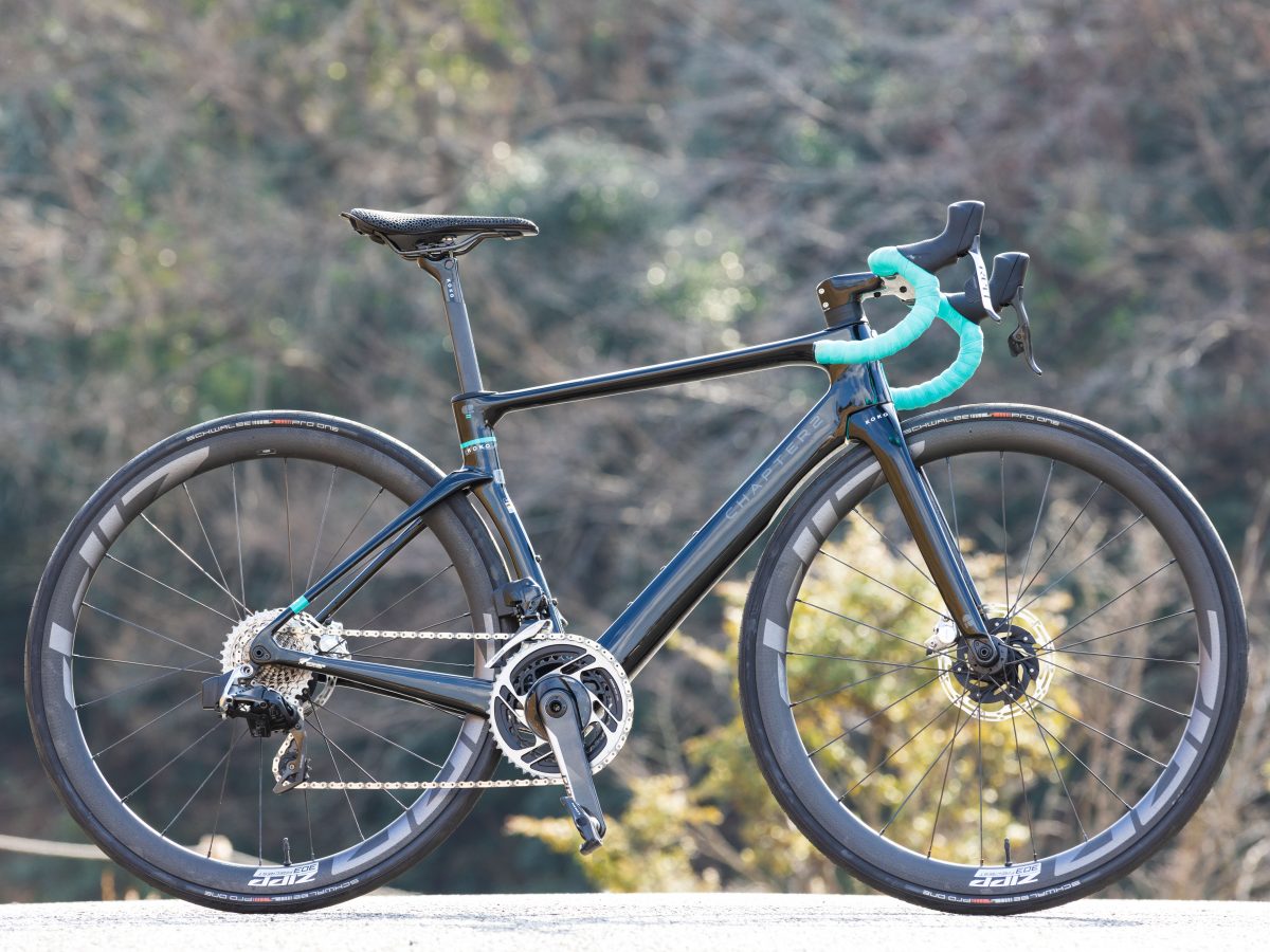 またエアロハンドルにケーブルフル内装のコクピット、カムテールチュービングを施したフレーム形状は、エアロダイナミクスによる直進安定性に優れ、ライダーの意思に直感的な駆動力を発揮してくれる。高剛性のBBまわりと相まって、どのギヤに入れたとしてもトルクの流れが軽く、スピードに乗ったバイクは先へ先へと距離を稼いでくれる。