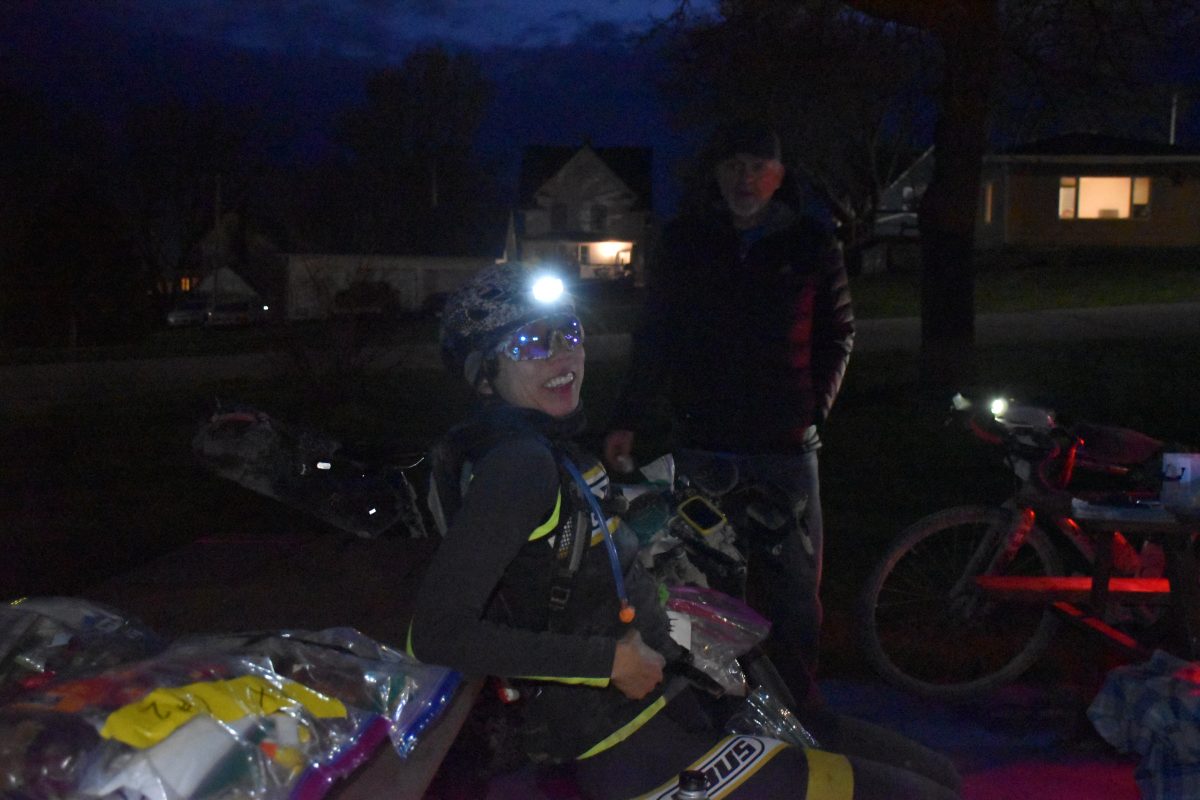 CP2が閉鎖するのが23時で、2時間以上余裕をもって到着していたので、今回も特に急いで去る必要はありませんでした。ここで焦って何かをし忘れて、暗闇で対処する羽目になるよりも、少し時間をかけて準備万端にしておきたかったのです。街灯がなく夜間は本当に真っ暗になるので、できれば誰かと一緒に走れればいいなと思っていました。ただ、皆それぞれペースが違うのでどうやら単独走行になりそうでした。準備は万端なのでソロでも問題はありません。さて出発しようというところで、もう一人用意をし終えたライダーがいたので二人で発つことになりました。CP2が最終チェックポイントで、ゴールまでは約150マイル(241㎞)です。その間にもう1カ所だけ、補給・補充できる場所があります。
