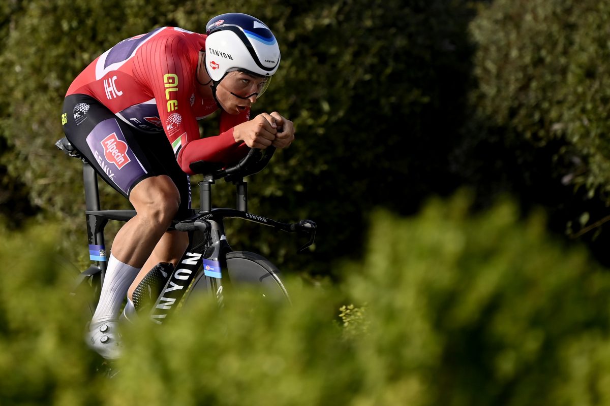 以降、有力選手が続々とコースへ。前回個人総合3位のジョアン・アルメイダ(UAEチームエミレーツ、ポルトガル)は10分5秒。この種目の世界王者、フィリッポ・ガンナ(イネオス・グレナディアーズ、イタリア)は2人目の9分台となる9分50秒を記録。