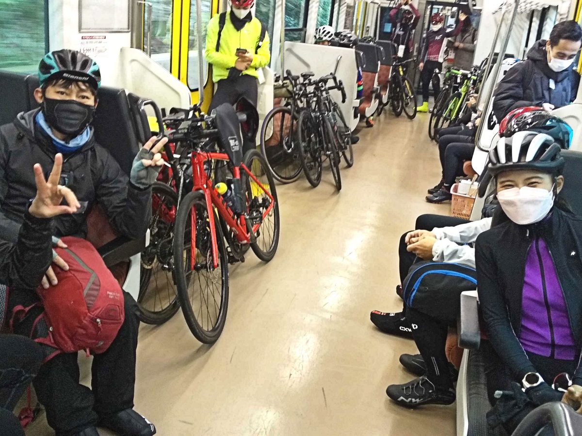 常陸大子駅からまた自転車をそのまま列車に載せる。行きと同じようにバンドで自転車を固定したら、あとはゆったり座って水戸駅へ。車内ではちょっとしたレクリエーションとして、篠さんへの質問コーナーも!