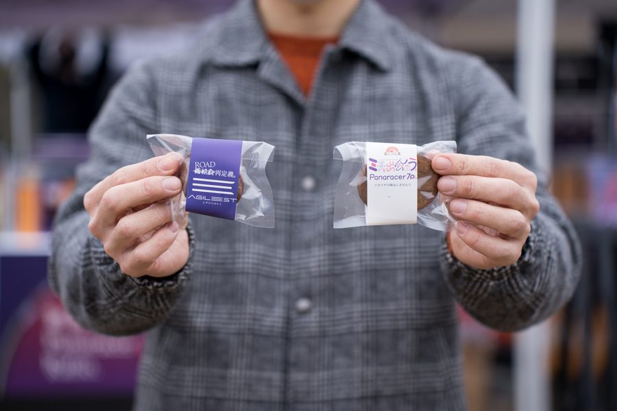 3月5日、6日に開催されるCYCLE MODE RIDE OSAKA 2022のパナレーサーブースで、タイヤを購入した人を対象に、ノベルティとして前田製菓とのコラボ補給食をプレゼント。先日発表された新タイヤ「AGILEST(アジリスト)」を購入した人には、特別なバッグがプレゼントされる。