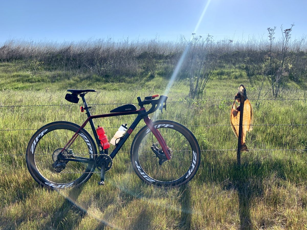 いい天候のおかげでやっと長距離を走れた私のLauf・True Grit。フィッティングや微調整もできたいい週末でした。となりにあるのは、道端に出現した……まさかの魚の干物!? PHOTO: Kae