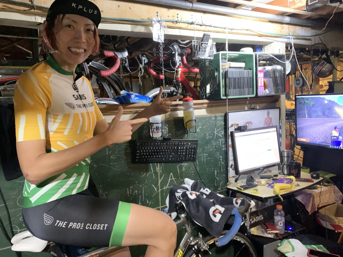 自宅バイク部屋。Saris/The Pros Closet(現Saris-NoPinz)チームで2シーズン過ごした間にZwiftレースのノウハウをたくさん学びました。PHOTO: Kae